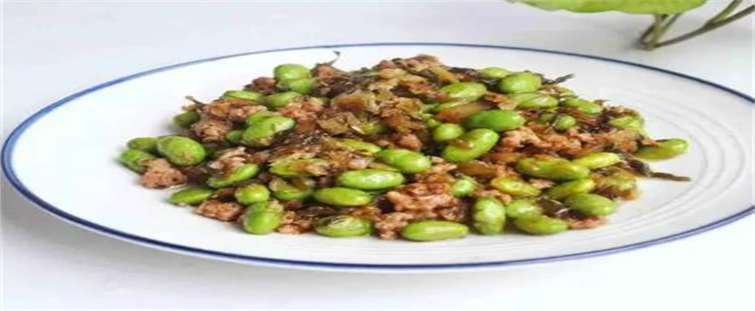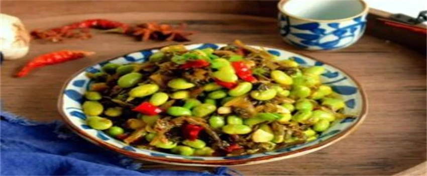 食材都准备好以后就可以起锅烧油,油热以后,把葱花和姜末辣椒段放进去爆香,然后把五花肉丁放进去煸炒,炒至颜色发黄,倒进雪菜继续煸炒,雪菜炒出香味儿以后,再把毛豆倒进去加上一点盐调味儿,继续煸炒到毛豆成熟在加上适量味精就可以出锅了。