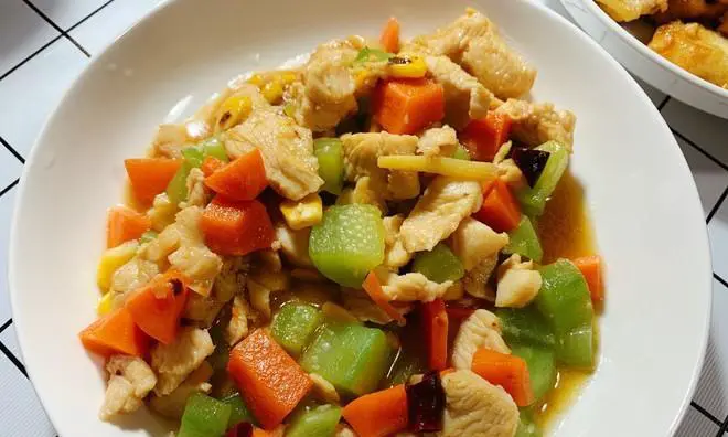 菜肴装盘后,可以直接享用或放在餐桌上等待宾客的到来。这款精美的什锦蔬菜肉丁不仅外形精致,而且口感鲜美,营养丰富,是家庭宴客、小型聚会等场合的理想选择。