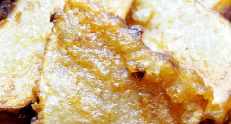 当土豆块呈金黄色时,可以将火候调低,让其继续炸制一段时间,这样可以保证土豆盒炸得更酥脆。