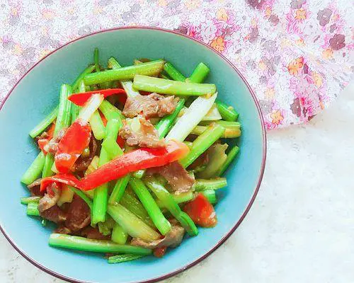 十五、烧肉炒芹菜是一道简单易做的下饭菜,不仅口感鲜美,而且营养丰富,具有补血、健脾胃、开胃等功效。掌握好材料的选购和处理方法,注意调味时少用盐,火候掌握好,就能够炒出一道美味的烧肉炒芹菜了。