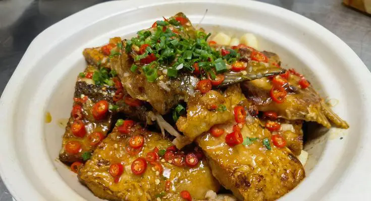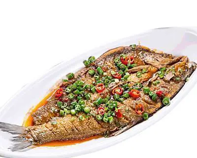 等到汤汁收干后,将小白刁装盘,撒上一些葱花和香菜末即可。