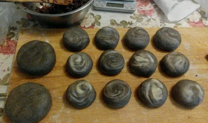 饼皮包裹紫米蔬菜混合物