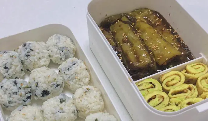 一道美味的饭团便当不仅需要好吃,还要看起来美味可口。摆盘时可以将鲜虾和时蔬均匀地分布在米饭上,然后用海苔或芝麻制成各种造型,增加便当的美感。