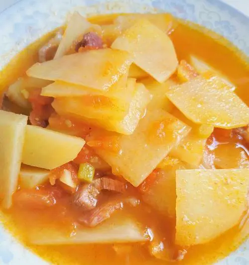 放入西红柿和土豆
