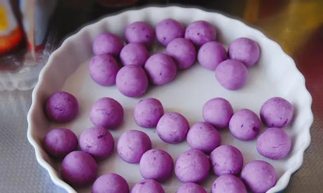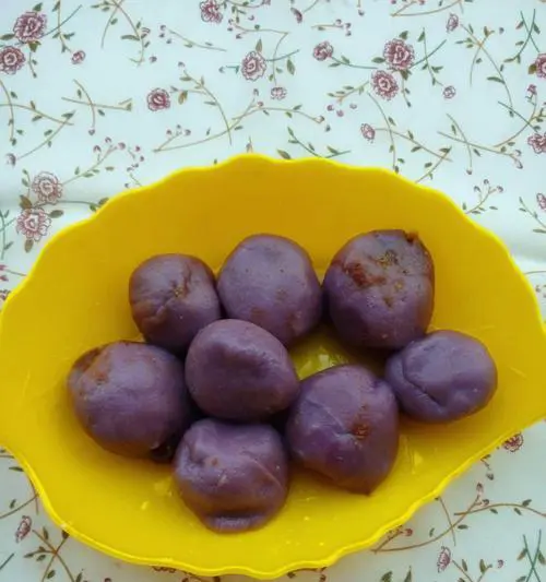 选择新鲜、无损伤、无虫卵的紫薯,并用清水洗净去皮。随后,将紫薯切成小块,放入蒸锅中蒸熟备用。