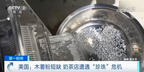 从4月中旬开始,一些美国的饮品店陷入原材料供应短缺局面,加州一家大型“珍珠”粉圆加工厂在社交媒体上表示,来自亚洲的木薯粉,也就是生产珍珠用的主要原材料目前已经出现短缺。下游的一些奶茶店可能将会购买不到珍珠。为此,一些商家已经开始囤货。
