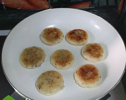 6.擀面皮:将小团子擀成薄饼状,切成圆形。
