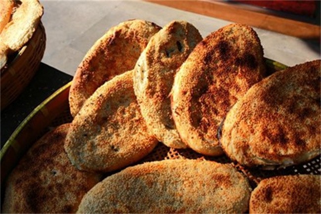 烧饼也是当地的特色名吃,在制作的时候是用柴草为燃料烤制而成,与普通的用炭火烤制的烧饼有着很大的差别,在口味儿上既有柴草的清香,又能够保留食物最原始的口感。