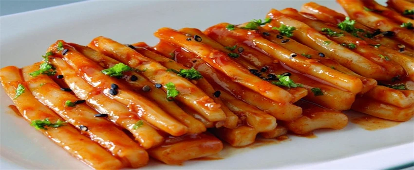 第二种是辣炒年糕需要食材,年糕,青椒,红椒,洋葱,熟白芝麻适量,番茄辣椒酱,白糖,盐适量,油适量。首先将年糕洗好,青椒、红椒、洋葱都切细条备用。然后兑好酱汁,用番茄辣椒酱、白糖加水拌均。然后炒香洋葱,之后放入年糕,再倒入调好的酱汁,再加水煮开;等汤汁收干之后加入青、红椒炒匀,最后出锅撒上白芝麻即可。