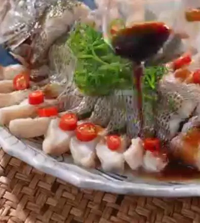 6.出锅后,加入香菜和小米辣,浇上蒸鱼豉油和热油,这样一道寓意着年年有余的蒸鲈鱼就做好了,造型好看,口感软嫩,十分香甜。
