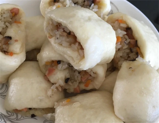 发好的面揉匀排气擀成,腰形的面片不要擀的太薄,然后把炒好的糯米饭整齐的倒在面皮上。把面皮两端捏住,上下包住也不要,担心包的不好看或者包的不严实,只要把面反过来整理一下就可以。制作好的生坯放在木板上,切成均匀的小段。做好的面卷放在蒸锅里面,盖上盖子发酵半个小时,然后开火蒸20分钟,时间到了之后关火,不要立刻打开盖子焖5分钟再开盖,这样做出来的不会塌陷。