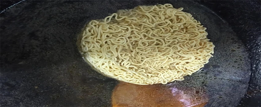 3、准备一口锅,放入清水,水烧开之后把方便面放入水中,煮至沸腾散开。这时候要注意火候,将方便面煮到6-7成熟,只要能散开就可以捞出来。喜欢吃有口感的,将方便面放入冷水中过水,捞出之后放一点熟的菜籽油搅拌好放置一旁备用。