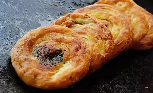 军屯锅盔是彭州的一种特色美食,在当地有着悠久的制作历史,是由当地的一家小吃店制作而成的,其制作工艺比较简单,制作好的军屯锅盔形状非常像油饼,但军屯锅盔的口感比较酥脆,外皮焦香,内里柔软细腻,适量的吃一些军屯锅盔,能够很快的增加饱腹感。