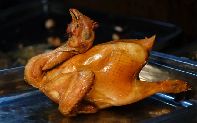腊杆子烧鸡有着非常悠久的历史,是非常有名的一种传统美食,制作工艺非常的严谨精细,在制作烤鸡的时候,需要用腊木进行熏烤,搭配上各种卤料和汤汁,先将鸡放入卤锅中进行卤制,煮好后放在架子上进行闷烤,这样制作出来的腊杆子烧鸡口感鲜嫩,肉质紧实,口齿留香,搭配美酒或者用凉皮包裹着鸡肉一起吃,味道鲜美,咸香分明,经过焖烤的鸡肉油脂非常低,吃起来不油腻。