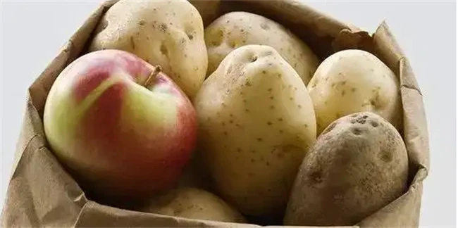 储存土豆的时候,苹果也不用放太多,一般10个土豆放一个,苹果就可以把苹果放在土豆中间一起储存,大概能保持两个月左右,不让土豆发软不发芽。但是苹果不能和其他的蔬菜一起存放,因为苹果属于后熟水果,在成熟的过程中会释释放一种催熟的气体,这样就会导致其他的蔬菜特别容易变质腐烂。但是储存一些青芒果或者其他海里成熟的水果,可以放上苹果一起催熟。