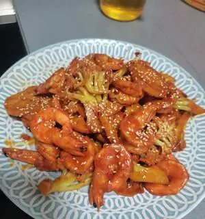 将锅加热,倒入适量油,放入姜蒜末爆香,再放入虾仁煸炒。煸炒过程中注意火力不要过大,以免虾仁过火变老。