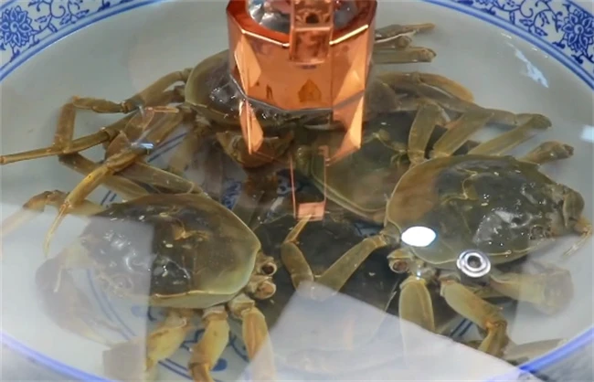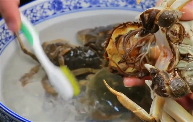 3. 到时间后,把水倒掉再放入清水,用工具将螃蟹清洗干净。