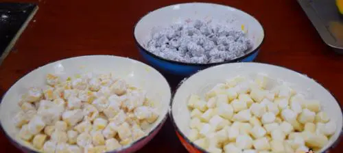 将三色包切成小块,和猪肉馅一起包成饺子,蒸熟后可以作为美味的三色包蒸饺。
