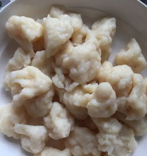 将冷藏好的鱼浆取出,用手抓成小球状,放入开水中煮熟,然后捞出备用。