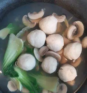 将煮好的三鲜鱼丸放入事先准备好的汤料中煮沸,并加入少量香油和白胡椒粉进行调味,可以根据个人口味进行加量。