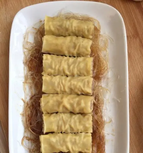将制作好的山药馅均匀地涂抹在豆皮上,并将豆皮卷成紧密的卷状,从两端往中间压紧,保证山药馅不会散落出来。在包裹的过程中,可以根据个人口味添加适量的调料。