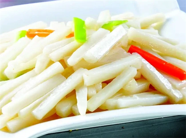 秋季正是山药成熟的时候,不仅山药的营养价值高,做法也是多种多样,最家常的做法就是炒山药。准备适量山药,去皮洗净切成长条,用清水浸泡,再准备适量青红椒做配菜调料,需要用到干辣椒,蒜片。锅里面先烧清水,加入适量白醋,把山药倒进去,焯烫两分钟捞出来之后锅里没少加油,加入蒜末炒香,然后把山药放进去,快速翻炒,加入适量盐,蚝油调味出锅的时候淋上适量水淀粉。
