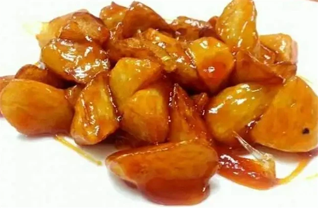 甜甜的拔丝山药也是小孩子们的最爱。先把山药去皮,洗净切成滚刀块,放在清水里面浸泡一会儿,捞出来控干水分,上面撒上一层干淀粉,锅里面油温烧到6成热,把山药下进去,小火炸成金黄色。杂志的过程必须要有耐心,如果火太大,山药还没有成熟,外皮就糊了,不好吃。每年放一勺水,加入一大勺白糖,小火慢慢熬成糖稀,白糖熬制成枣红色,炸好的山药倒进去快速翻炒,每块山药上面是都挂上糖浆之后出锅。