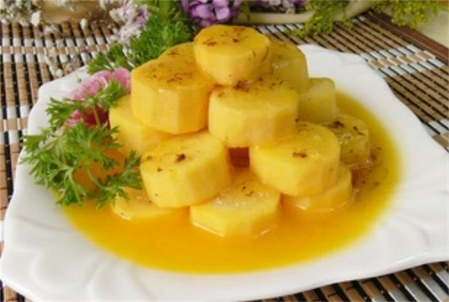 用山药做的蜜汁山药是孩子们特别喜欢吃的一道菜,也可以当做一道甜品。做法也很简单,把山药去皮之后切成条。拿一盆清水里面加入一点食用盐搅拌均匀切好的山楂条,放进去浸泡一会儿,防止氧化,大概浸泡10分钟左右把山药码放在盘子里面,蒸锅水烧开之后,放上山药蒸15分钟左右山药软烂成熟出锅之后撒上蜜糖桂花就OK了。