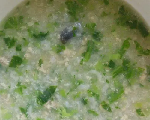 1.待米粥煮至九成熟时,加入处理好的芥菜;