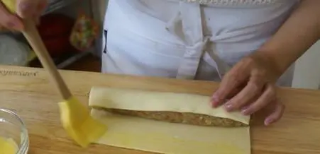 将香肠包入酥皮内