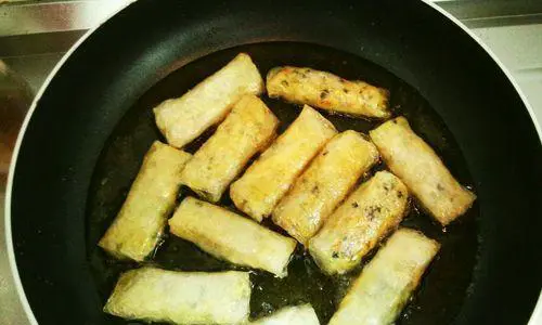 将卷好的春卷放入锅中,倒入适量的油,用中火炸至表面金黄酥脆。取出后沥干油份,放在吸油纸上吸干油份。