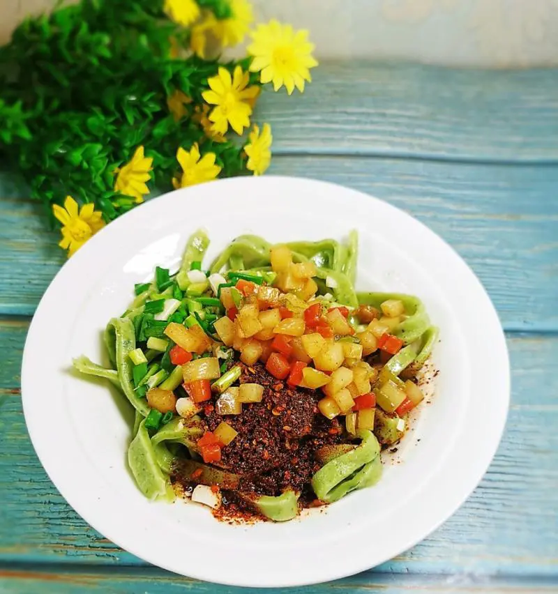 手工制作的菠菜牛肉臊子面非常美味,鲜嫩多汁,满口留香,是夏季凉拌的绝佳选择。