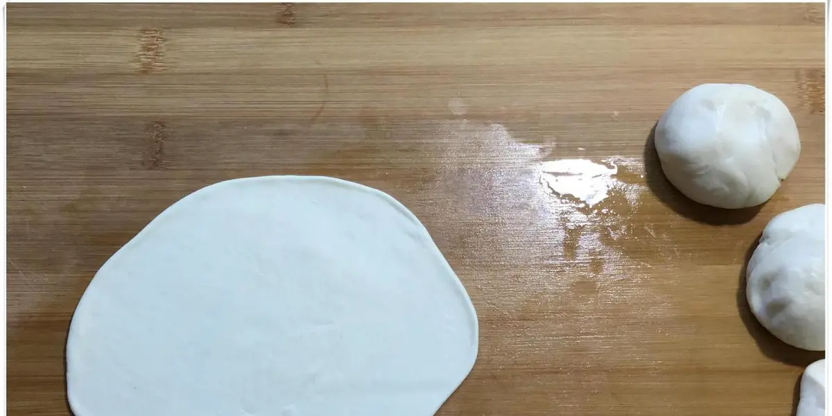 六、擀皮:要用力均匀的擀开面皮,形状要圆形薄片,边缘略厚。