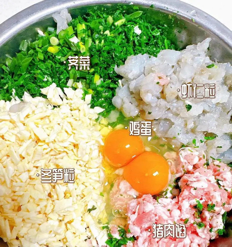 将面粉和水按照2:1的比例和成面团,揉捏至面团有些硬度且表面光滑。将肉馅和蔬菜混合在一起,根据口味加入适量的调料搅拌均匀。
