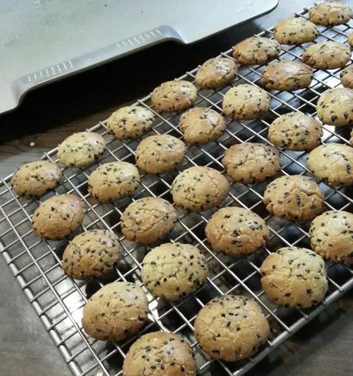 将烤好的桃酥取出,放在凉架上晾凉。