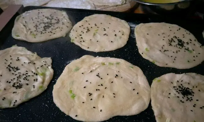 在制作葱油饼的过程中,需要注意火候和厚度。如果油饼太薄,煎出来会变得很硬,如果太厚,就会有点生。在煎的时候要适当加油,使葱油饼的口感更加脆口。
