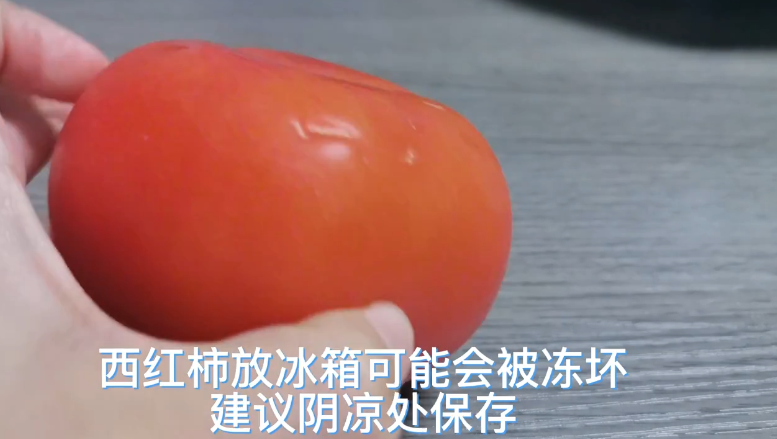 西红柿则不太适合冰箱存放的蔬菜。西红柿含水量高,放在冰箱里容易被冻伤,尤其是家里冰箱比较老的,有时候边缘温度会很低,西红柿贴近边缘的地方会被冻出像烂掉一样的“伤口”。如果买的西红柿新鲜、饱满、没有破损,可以存放在阴凉处,如今市面上的西红柿多是耐储品种,一般放置一周不会坏掉。