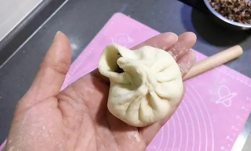 将制作好的花形面饼和馅料放在案板上,将馅料放在面饼中央,然后将两侧的面皮折叠起来,揉成一个小圆球。这样就制作出了一个口感松软、香甜可口的双花包子。