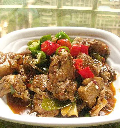 双椒仔姜鸭的口感鲜美,鸭肉的肉质细嫩、多汁,青红尖椒的清香辣味和姜的香味完美融合,让人回味无穷。