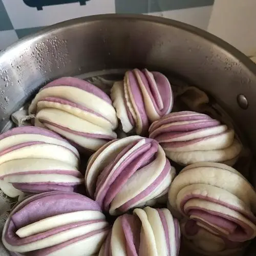 将切好的双色卷放在蒸锅中,用大火蒸15分钟即可。蒸煮完成后,放凉即可食用。