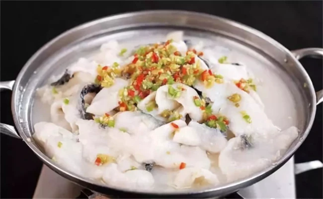 水开之后加入盐蚝油,味极鲜酱油调味儿鱼汤煮成白色,鱼骨成熟之后,捞出来铺在青菜上面。锅里面的鱼汤烧开之后,把鱼片下进去注意下鱼片的时候,不要立刻用勺子搅动,等于汤开锅鱼片变成白色之后,稍微搅动煮1~2分钟,鱼片捞出来放在大碗里面,再加入适量的鱼汤。重新起锅烧油,把葱花放在鱼片上面,再撒上一把白芝麻油,热之后把干辣椒放进去炸香,趁热把油浇在鱼片上即可。