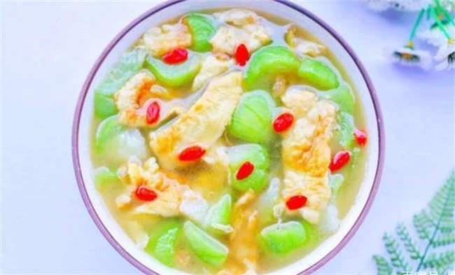 鸡蛋丝瓜汤:别看是只是简单的素材汤,但是确实是非常有营养的。做法也很简单,准备两个鸡蛋,丝瓜去皮洗干净切成自己喜欢的形状,切片切块都可以。锅里面放上适量猪油,油热之后把鸡蛋直接磕到锅里面,然后用铲子快速炒散。然后把葱花放进去炒香,再把7号的丝瓜加进去,大火把丝瓜炒软,加入开水,大火煮五分钟左右,丝瓜软烂,再加入一点盐和白胡椒粉调味儿。