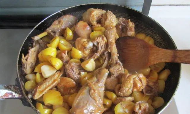 将鸡肉洗净后,去掉多余的毛、脂肪和筋膜等不必要的部分。将其切块,用水加少量酱油和料酒浸泡片刻,去除腥味。同时,将粟子用清水洗净。