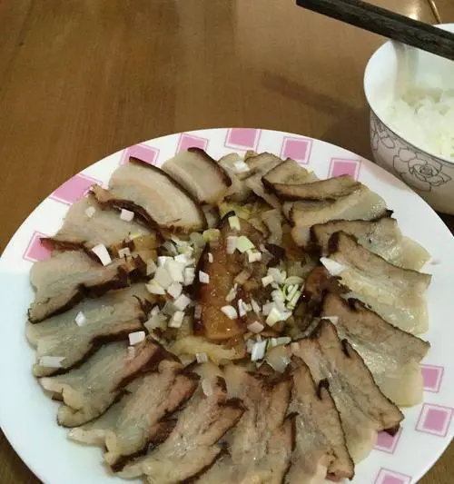 酸菜扣肉煮好后,可以直接装盘食用。将五花肉和酸菜摆放在盘中,然后撒上一些葱花和红椒碎,点缀出美味的色彩。