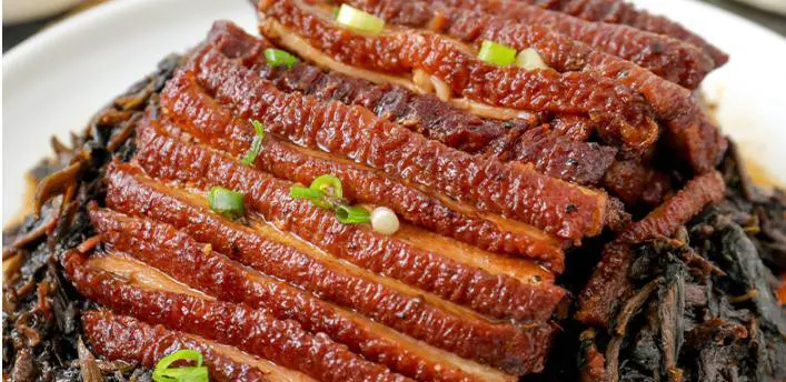 处理五花肉的关键是去除油腻,使其更加入味。将五花肉放入冷水中,烧开后煮5分钟,将肉捞出沥干。然后在五花肉表面均匀地涂上白糖,并用火炙烤至表面呈金黄色。