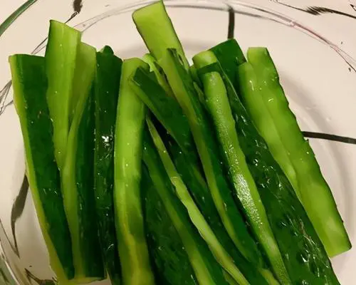 黄瓜可以用刨子刨成薄片,拌上调料后可以做成凉拌黄瓜,也很美味。