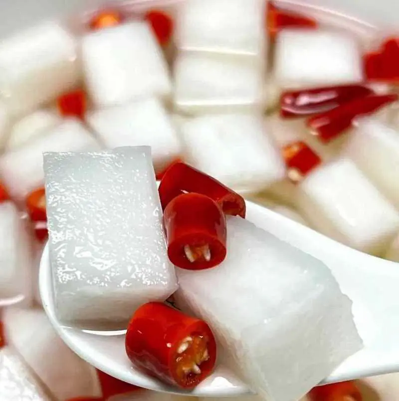 等待发酵的时间过后,我们可以打开泡菜坛,品尝一下制作好的酸辣泡萝卜的口感。如果口感偏甜或者偏咸,我们可以适当调整一下白糖或盐的用量。
