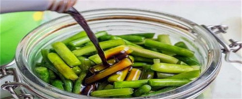 一般加入食盐之后,要将食盐跟蒜苔充分的搅拌均匀,再干上保鲜膜。这时候腌制一段时间之后,容器当中就会有大量的水。此时我们用自己的双手不断的揉搓,一直等到蒜苔揉搓发软之后,将蒜苔里面的水及时的取出。在这个时候锅里面烧干之后,放入酱油,醋,白糖,将其煮开之后,放到有蒜苔的容器当中。