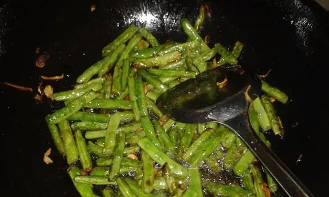 如果四季豆比较老,可以加入少量的水,盖上锅盖焖煮一会儿。