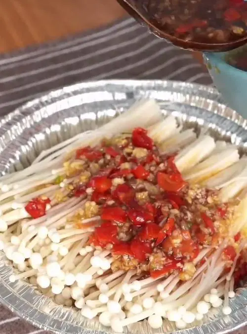 以金针菇为基底,搭配鲜美的花甲,再加上香气四溢的蒜香调味,成为别样美味的家常菜。